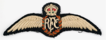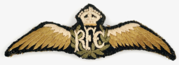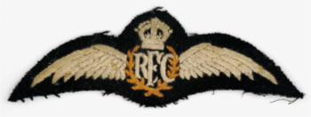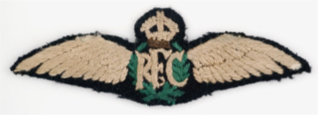 1913 Royal Flying Corps metal pilot wings - The original metal Royal Flying Corps (RFC) pilot badge was designed by senior officers General Sir Frederick Hugh Sykes and General Sir David Y. Henderson. It was authorized by Kind George V on February 1, 1913 under Army Order 49/13. The metal badges were phased out in favor of fabric wings in February 1914.