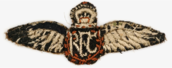 This is a 1918 Royal Flying Corps/Royal Air Force transitional pilot badge. It had