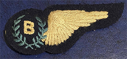 RAAF Air Bomber brevet made in England as a replacement for RAAF aircrew - padded on light blue background material