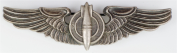 It is believed that these are made by the Navajo craftsman who made hand crafted badges during the war. The base wing is not hand made but the bomb is and resembles the same style used on the full size hand crafted badges.