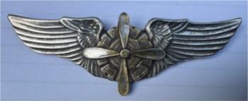 Because of the detailed engine but no reference to a four bladed propeller, this may very well be a civilian Tech-Rep badge for an engine contract company, rather than a Flight Engineer crewman?"