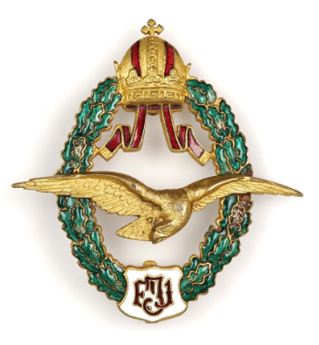 The official name is „Bundesflieger-Abzeichen“ (Federal Aviator Badge). From September 1916 the „K.k. Oesterreichische Flugtechnische Verein“ (Austrian Flight Technical Association) issued this badge for the promotion of domestic aviation.