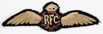 1913 Royal Flying Corps metal pilot wings - The original metal Royal Flying Corps (RFC) pilot badge was designed by senior officers General Sir Frederick Hugh Sykes and General Sir David Y. Henderson. It was authorized by Kind George V on February 1, 1913 under Army Order 49/13. The metal badges were phased out in favor of fabric wings in February 1914.