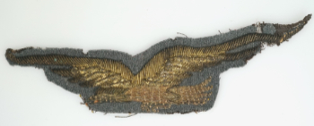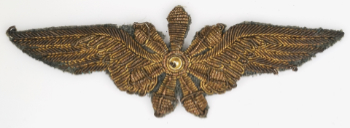 Italian military pilot's badge without crown that belonged to Lt. Earle D. Forsyth, USAS who trained and served with the Royal Italian Air Force in Forgia, Italy. The badge was made by V. PESCE, PISA.