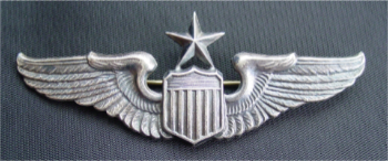 These wings are presumed to be originally 1938 prewar Orber die, likely purchased by Amcraft and used post-12/7/41 at whatever time Orber sold company. There are silver plated brass (see Pilot Wing page) and STERLING wings with similar overall design but differing detailed characteristics and thickness (thanks to Cliff Presley for info on dates and Companies)?